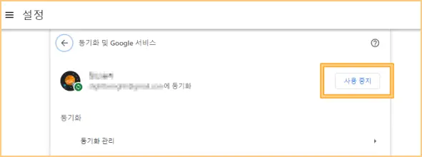▲ [동기화 사용 중]을 클릭하면 설정창에 진입합니다. 설정창에 프로필이 보이는데 우측에 [사용중지]를 클릭합니다.
