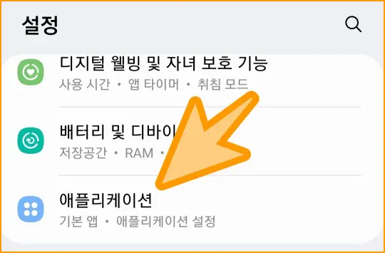 ▲ [설정] 앱을 실행합니다. [애플리케이션] 메뉴를 선택합니다.
