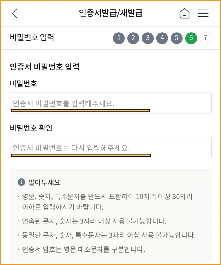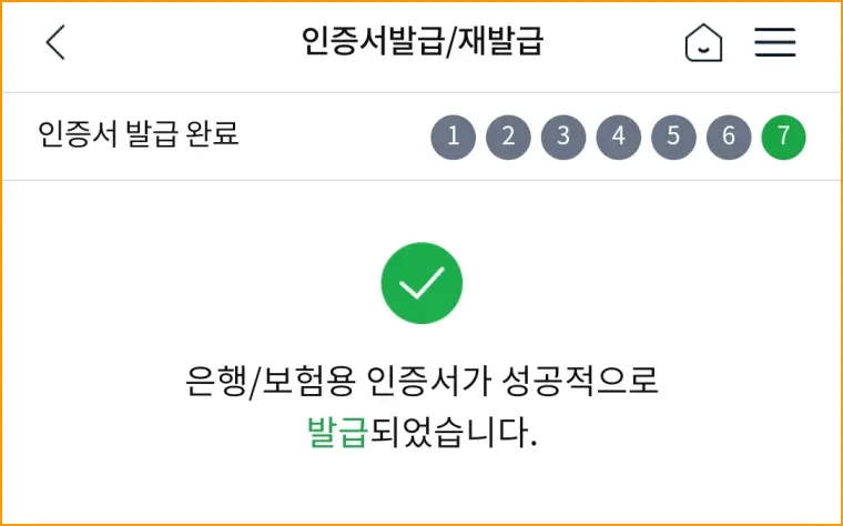 - 인증서 비밀번호 설정 ▶ 발급 완료