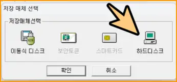 ▲ 저장 매체를 선택합니다. 저는 하드디스크를 선택하고 진행하겠습니다.