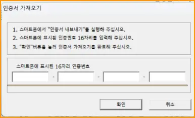 - 인증서 가져오기(스마트폰->PC) ▶ 인증서 가져오기 버튼 클릭