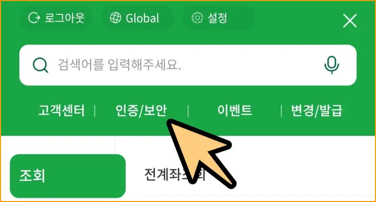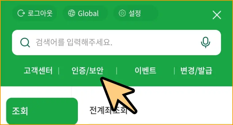 ▲ 검색창 하단의 [인증/보안]을 선택해 줍니다.