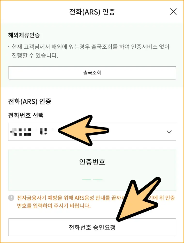 ▲ 전화번호를 선택하시고, 하단의 [전화번호 승인요청]을 눌러줍니다. 조금 기다리면 농협으로부터 전화가 오며, [인증번호] 2자리를 입력해 주시면 통화는 자동으로 종료됩니다.