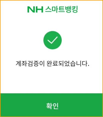 ▲ 본인 정보와 일치하다면 계좌 검증 완료창이 뜹니다.