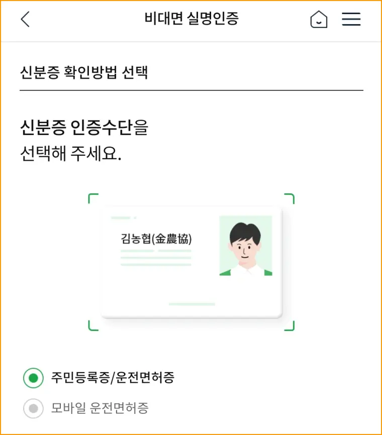 ▲ 신분증 인증을 해줍니다. 운전면허증 / 주민등록증으로 인증할 수 있습니다. (모바일 운전면허증이 없기 때문에 확인은 불가능하지만 옵션이 존재하는 것으로 보아 모바일 운전면허증으로 인증이 가능한 것 같습니다.) 신분증 진위여부 통과까지 확인해 주세요.