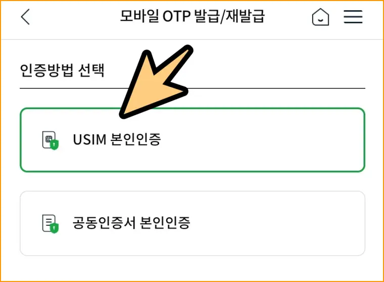 ▲ [USIM 본인 인증]을 선택해줍니다.