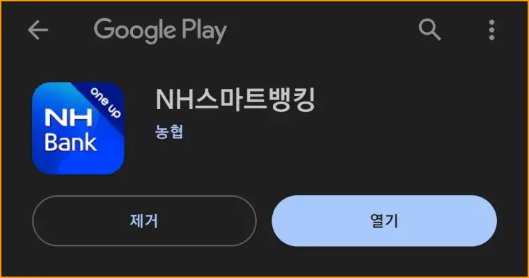 ▲ [NH스마트뱅킹] 앱을 실행해 줍니다. 농협뱅킹 앱이 없다면 아래 링크를 통해 구글 플레이스토어에서 설치해 주세요.