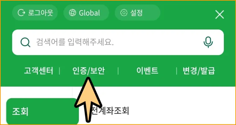 ▲ 검색창 아래에 위치한 [인증/보안] 탭 선택합니다.