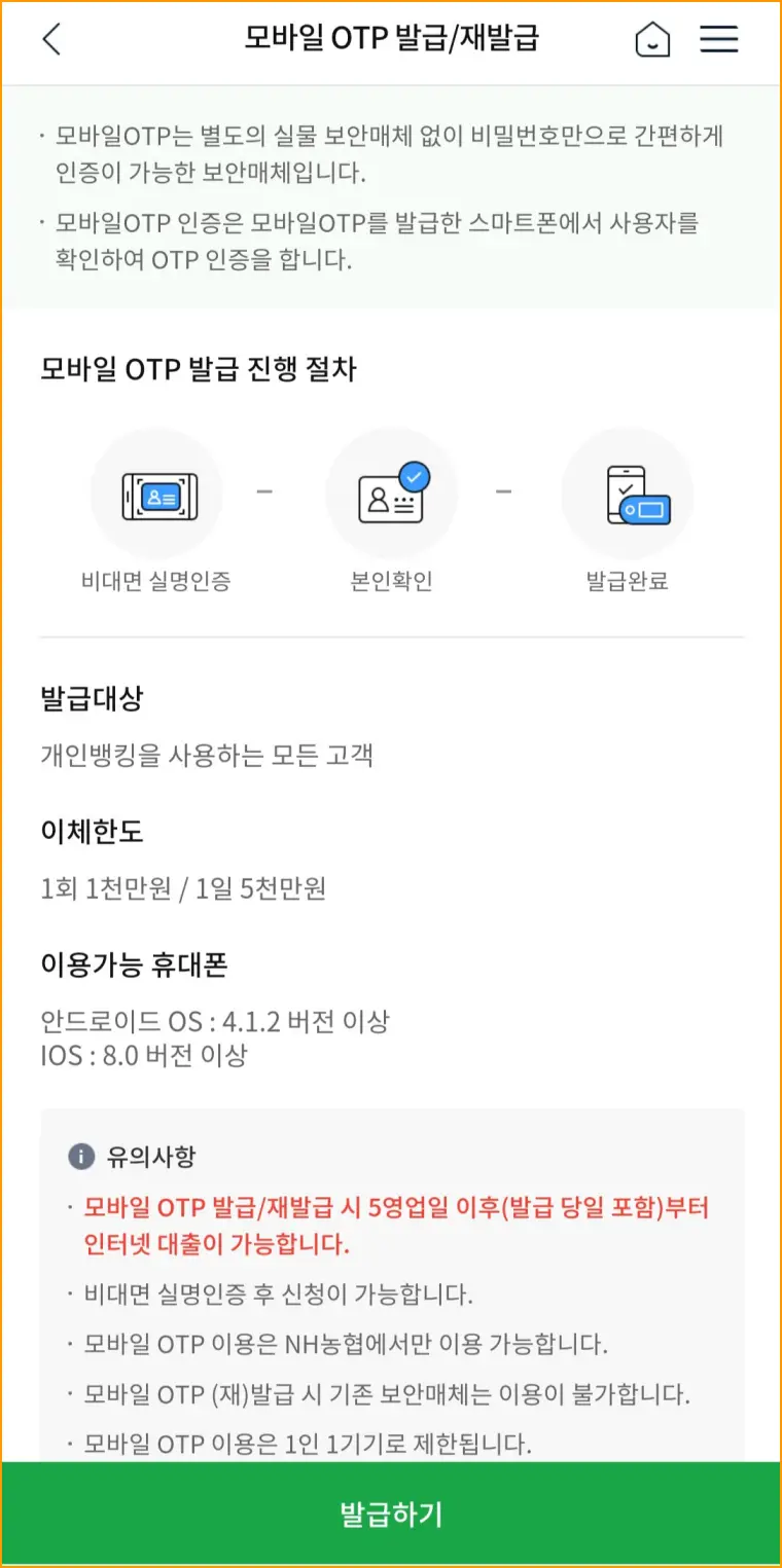 농협 모바일 OTP 발급 방법에 대해서 이미지를 통해 쉽게 알아보겠습니다.