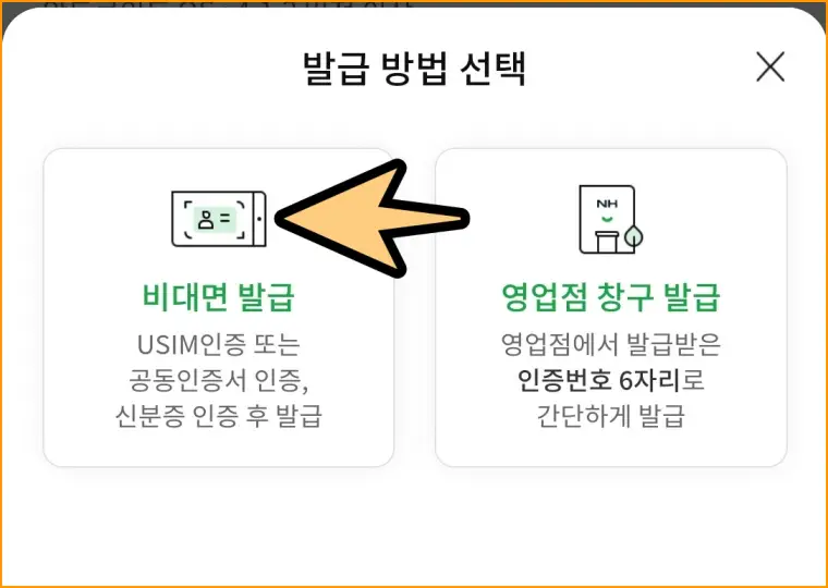 - 발급하기 ▶ 비대면 발급 ▶ USIM 본인 인증 ▶ 통신사선택, 번호 입력, 전체 동의 체크