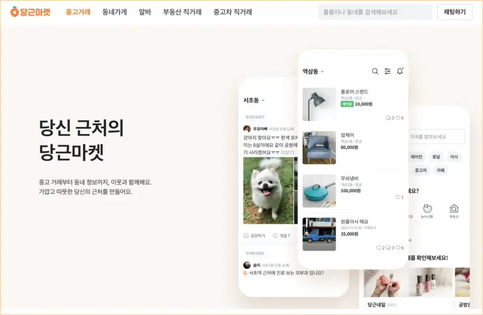 기존 중고거래 방식은 전지역구를 대상으로 하기에 사기 물품도 많고, 업자들이 판을 치고 있어 이용자 입장에서는 불쾌한 일이 다반사였습니다. 당근 마켓은 중고거래 영역에 후발주자로 진입했음에도 기존의 대형중고거래 플랫폼을 앞지를 수 있었던 이유는 바로 지역 기반 플랫폼이라는 것입니다. 동네 주민들끼리 거래를 할 수 있다는 점이죠.