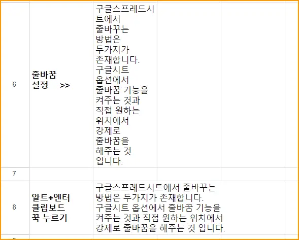 스프레드시트 줄바꿈 - 구글시트 셀 안의 줄 바꾸는 방법