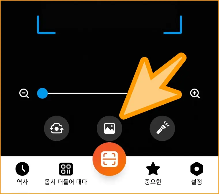 ▲ 권한을 허용해 주세요. 카메라 화면이 나오지만 바코드를 찍을 것이 아니기 때문에 가운데의 [갤러리 아이콘]을 눌러주세요.